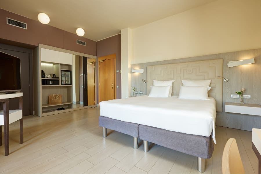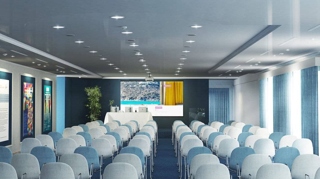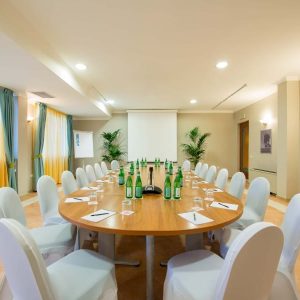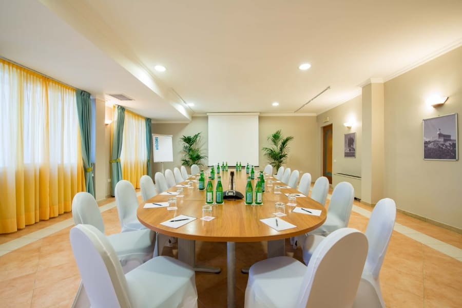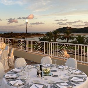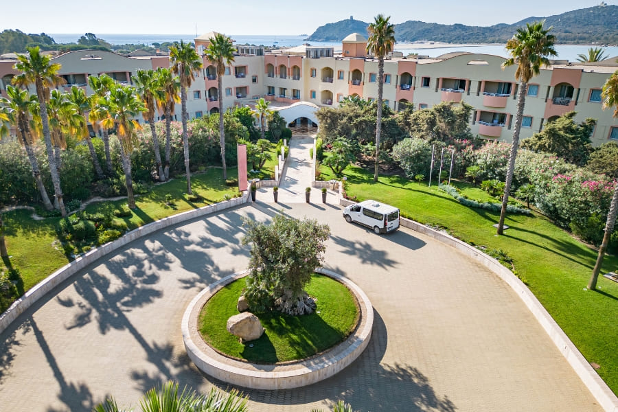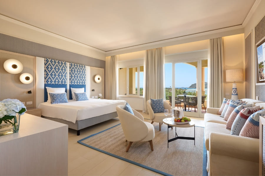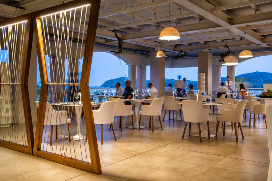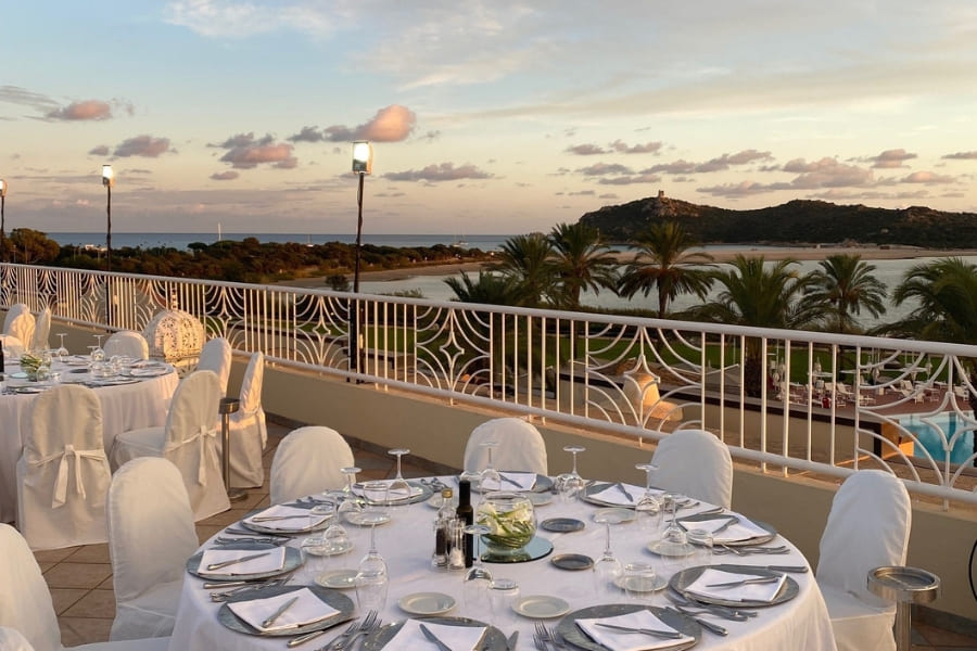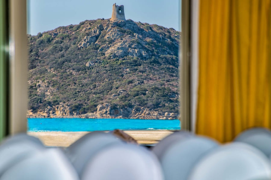 The hotel features 238 modern rooms and suites, 3 restaurants, 4 bars, and a renowned Thalasso Spa. Four meeting rooms are available, with a total capacity of up to 128 people. The Arbatax and Carbonara meeting rooms, situated on the rooftop, open onto a stunning panoramic terrace overlooking the Bay of Porto Giunco. While the Spartivento and Serpentara meeting rooms, on the ground floor, are ideal for smaller groups and hybrid meetings.