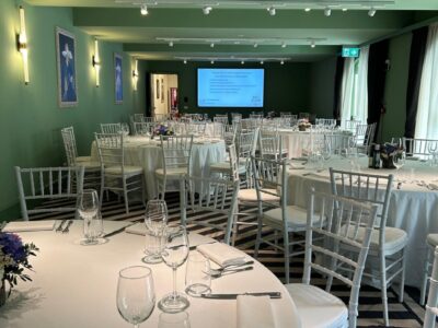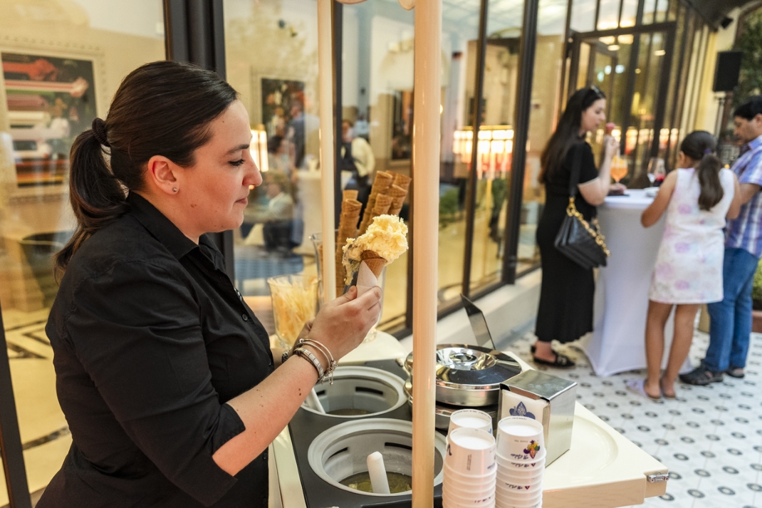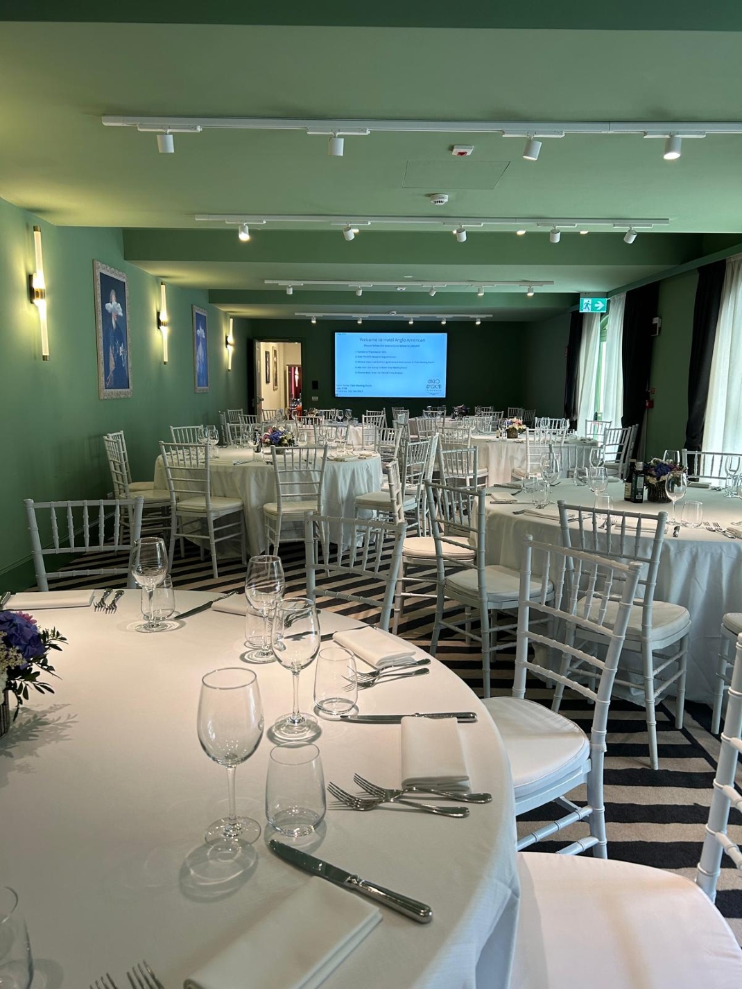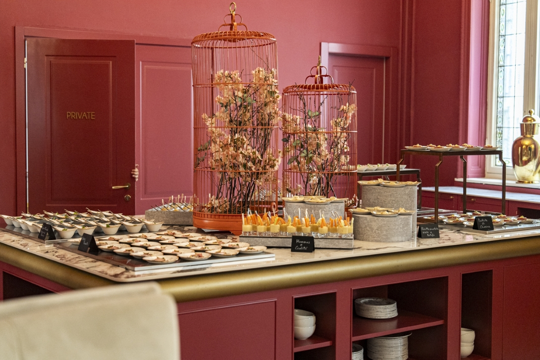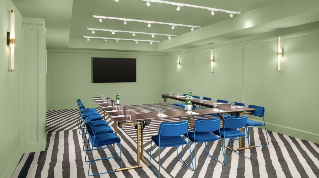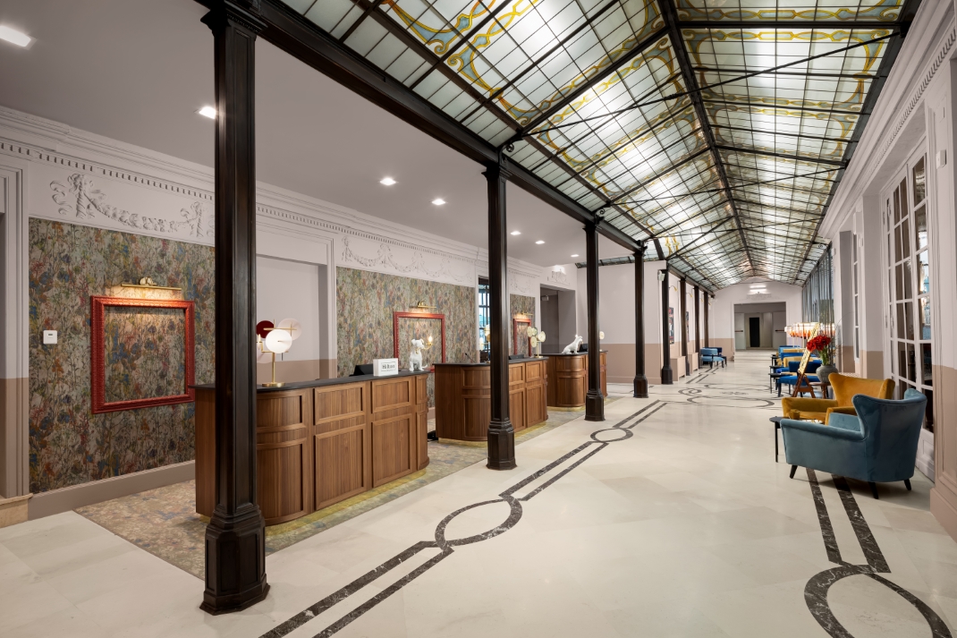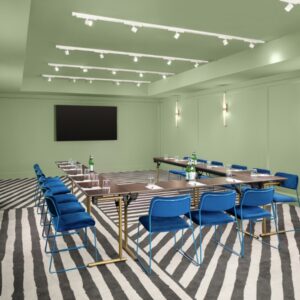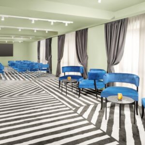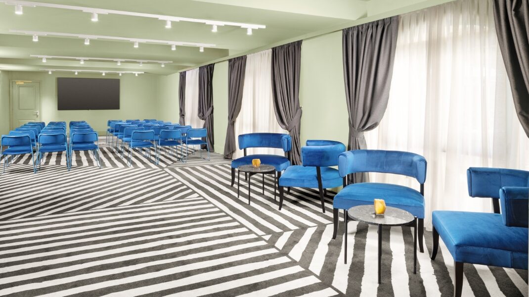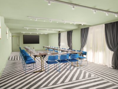 The main room, spacious and filled with natural daylight, offers direct access to the charming inner courtyard and the foyer area—ideal for hosting breaks and networking moments between sessions in an elegant and relaxed setting.