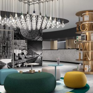 The lobby and common areas are large and colorful interconnected spaces: they welcome the contemporary traveler with an enveloping and fresh design, which responds perfectly to the needs of the business customer, as well as the leisure customer.
