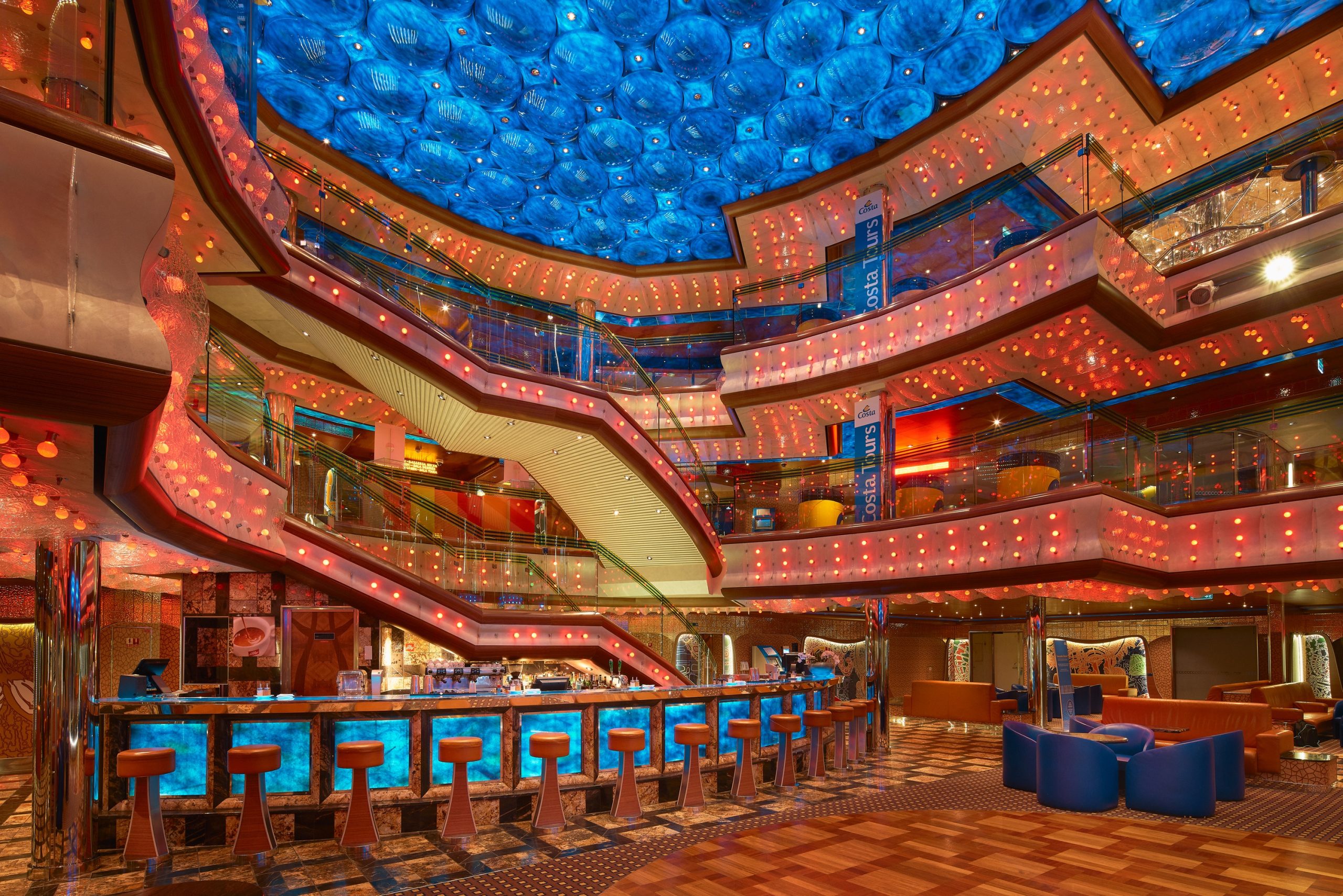 This is what we offer on board Costa Toscana, Costa Smeralda, Costa Diadema, Costa Fascinosa, Costa Deliziosa, Costa Favolosa, Costa Fortuna and Costa Pacifica with the spectacle of the sea all around you, combining business, fun, relaxation and taste, while you discover a different place every day, it is unparalleled.