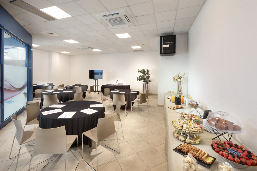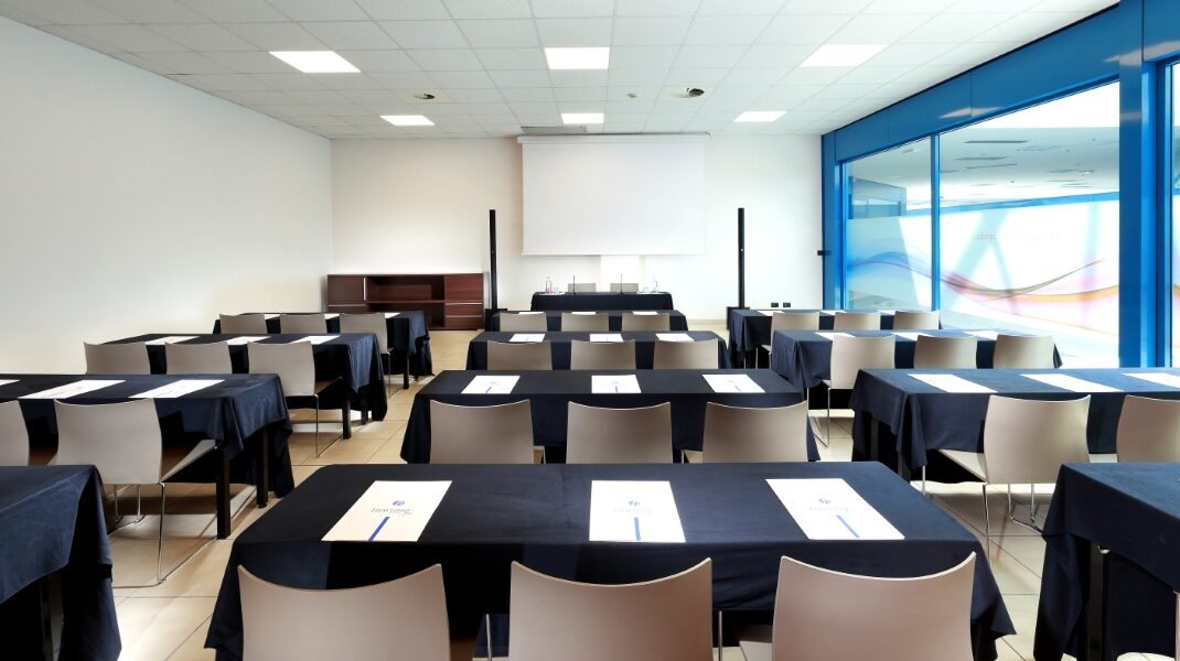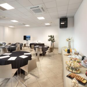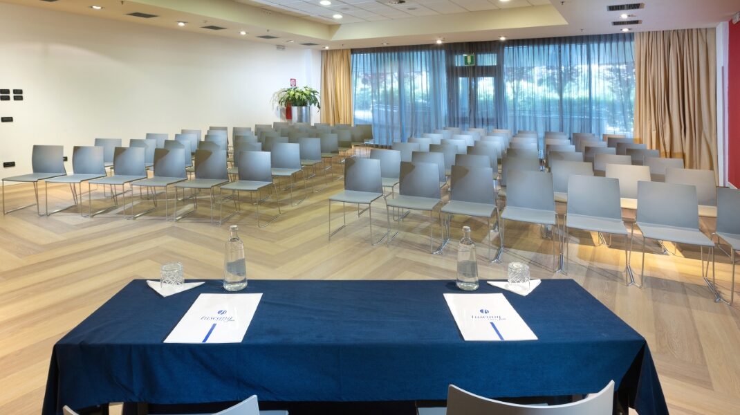 The event offering is complemented by 93 modern and comfortable rooms, ideal for guests, speakers, and staff, as well as an on-site restaurant with a panoramic terrace, perfect for business lunches, corporate dinners or informal networking moments. Coffee breaks can be served at the restaurant or directly in the meeting room, with a dedicated coffee station or full service, according to individual preferences.