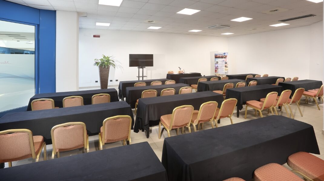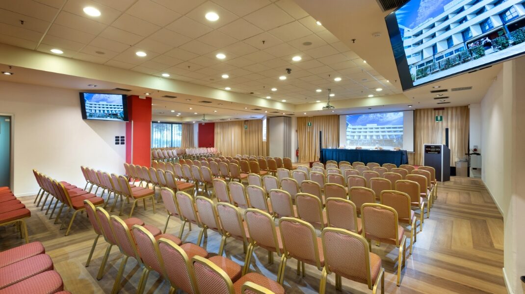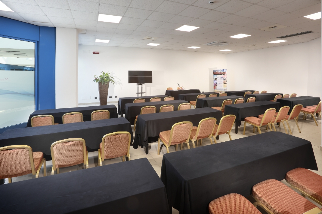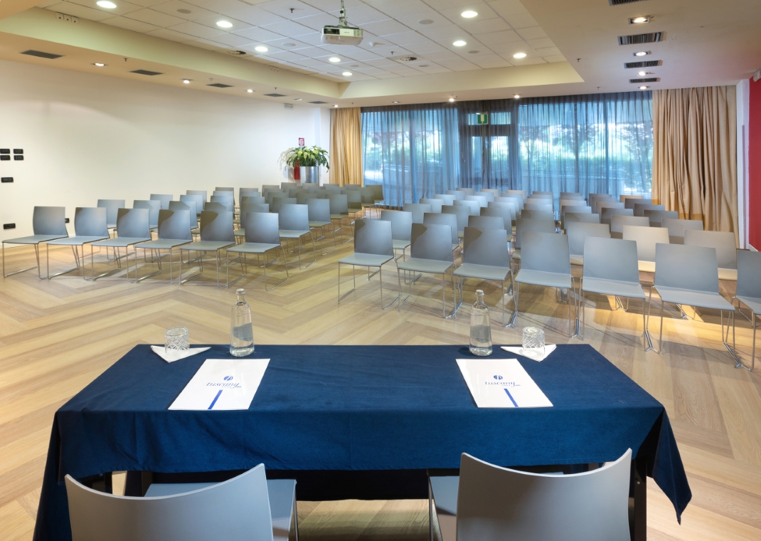Tuscany Inn features 10 modular meeting rooms, recently renovated and fully equipped, capable of accommodating up to 400 attendees in a single hall and over 1,000 participants across all spaces. The rooms are highly adaptable to any organizational need, from corporate conventions and product launches to masterclasses, training events, indoor sports competitions, and gala evenings.