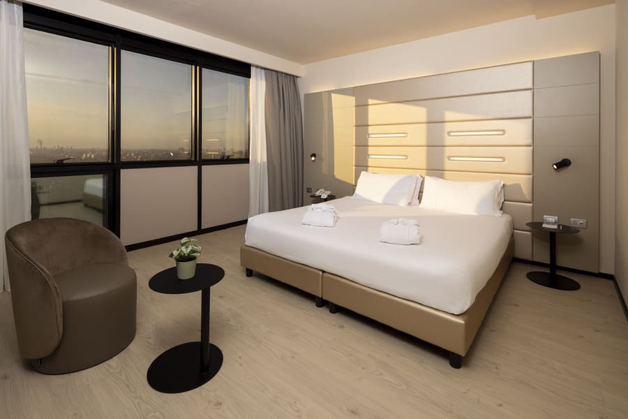Il design contemporaneo, gli arredi eleganti e funzionali delle confortevoli camere, i servizi 4 stelle e la posizione strategica rendono l’hotel la soluzione perfetta per il viaggiatore business ed anche per un rilassante soggiorno di piacere.
