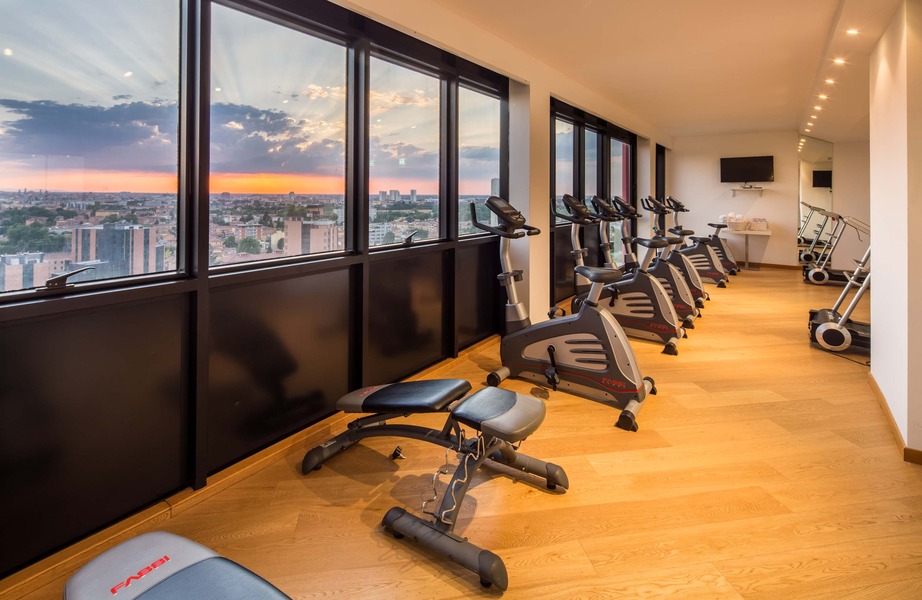 Situata al 18° piano, la sala fitness dell’hotel offre un’impareggiabile vista panoramica ed è ad uso completamente gratuito dei nostri Ospiti.