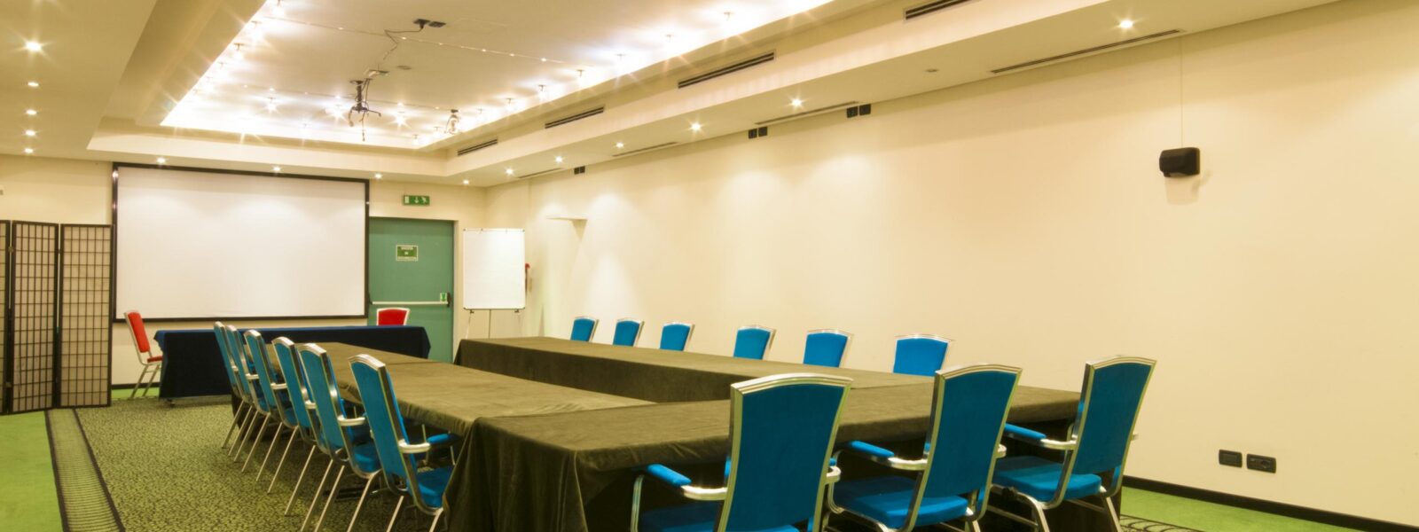 Ogni sala meeting offre una capienza diversa ed è dotata di moderni impianti di illuminazione, luci alogene a intensità regolabile con faretti fissi e/o orientabili, aria condizionata con gestione computerizzata del microclima (aria condizionata, controllo dell'umidità e ventilazione), impianto audio e video, mixer amplificatore con videoproiettore e microfoni fissi e portatili, schermi digitali a parete e/o interattivi, telefono e connessione Wi-Fi gratuita.