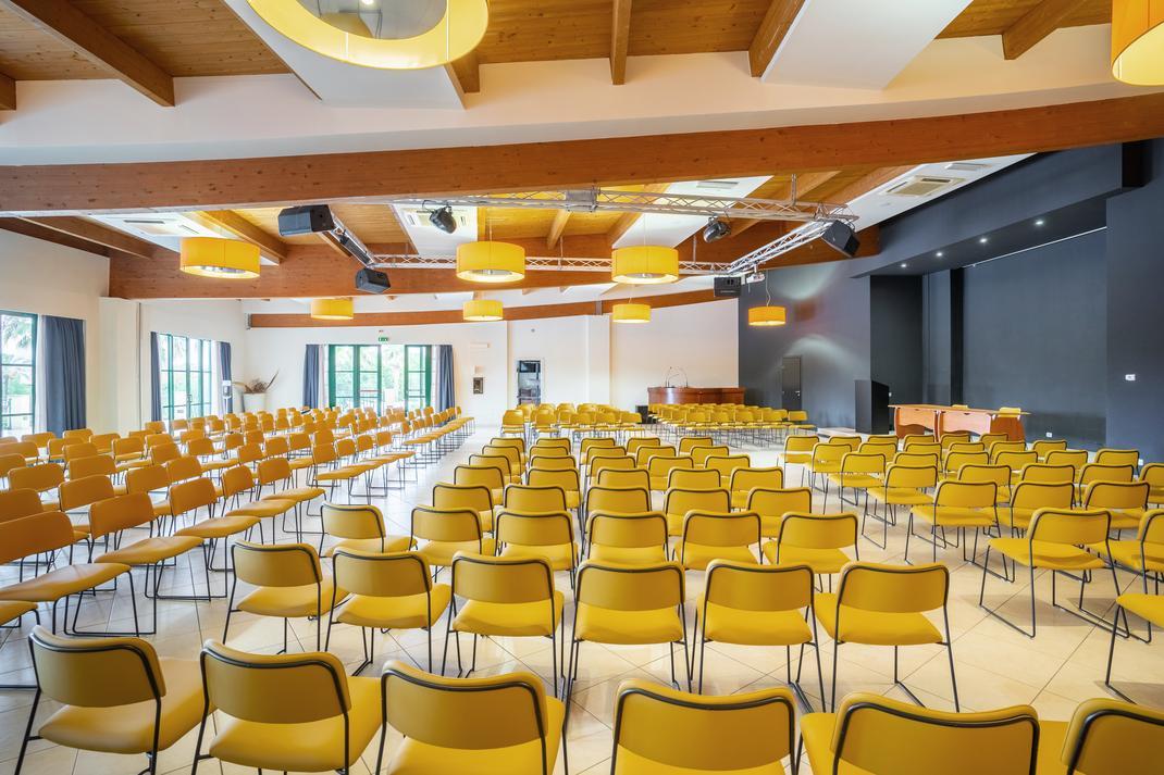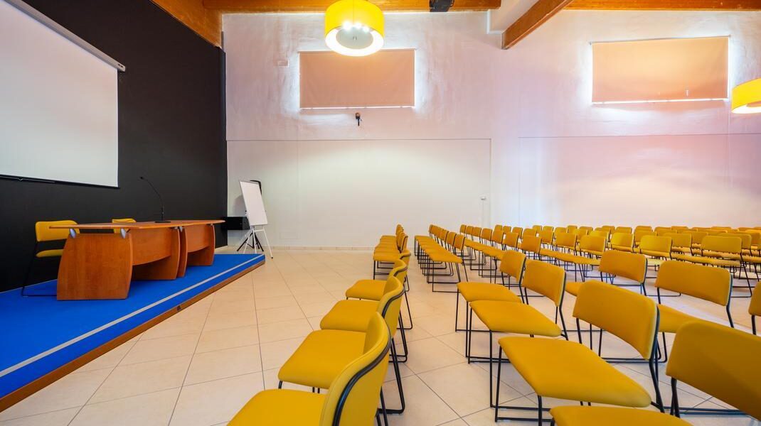 • Sala meeting di 320 mq (fino a 300 delegati), sala di 75 mq (fino a 50 delegati), saletta di 40 mq utilizzabile come break-out room