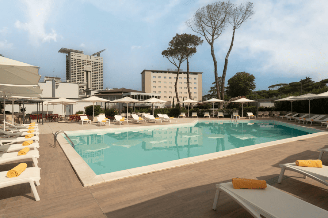 Circondato da una rigogliosa vegetazione, l'Hotel Cristoforo Colombo è comodamente situato tra il centro storico di Roma e l'aeroporto internazionale Leonardo da Vinci di Fiumicino.