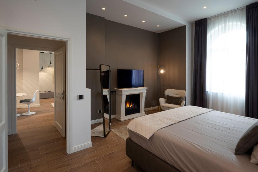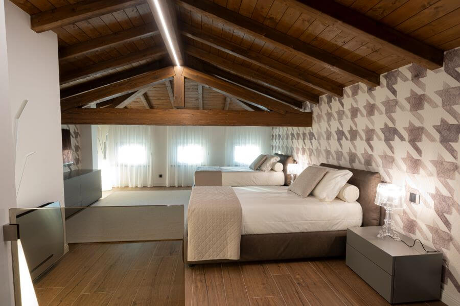 Le due Suite presenti all'interno del Castello sono state progettate con passione per l’eccellenza, conciliano eleganza e comfort italiani combinandosi con un design innovativo e moderno: un’oasi di pace, il luogo ideale per soggiorni che siano di piacere o per lavoro. Al secondo piano è inoltre presente una Fitness area che regala agli amanti dello sport una stupenda vista panoramica.