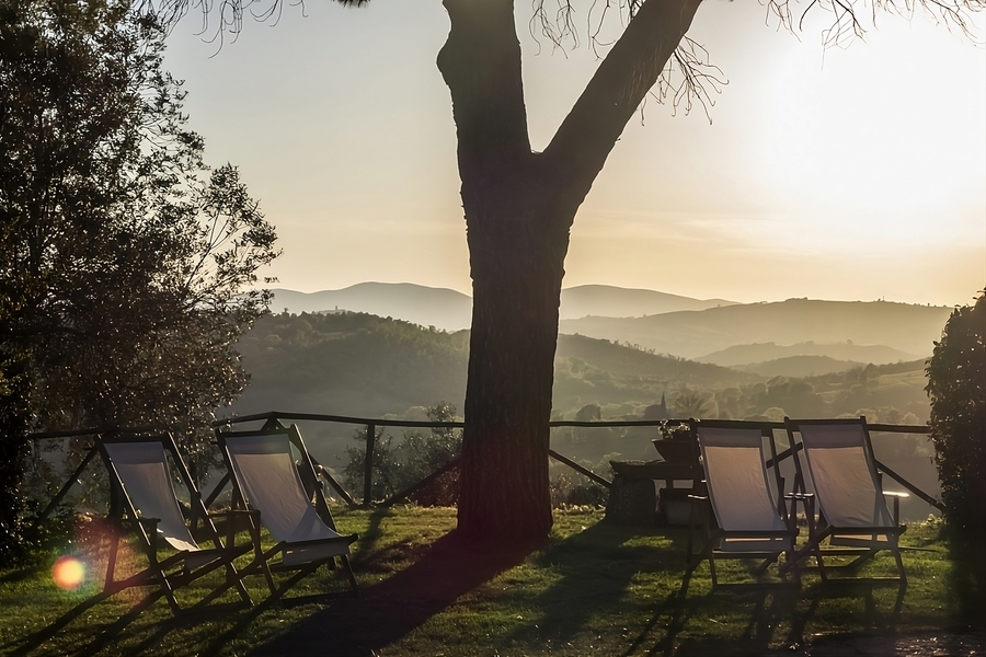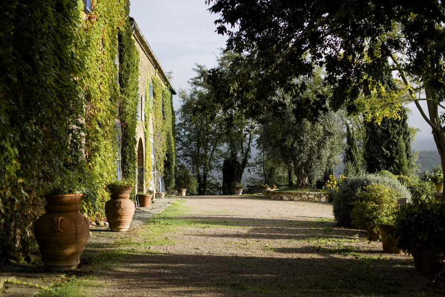 All’arrivo, è la vista a togliere il fiato. Lo sguardo si perde tra le colline ondulate della Toscana fino all’Argentario, sottolineando il legame tra questa antica tenuta agricola e le sue proprietà sorelle sulla costa. La piscina nel giardino domina i pittoreschi vigneti e gli uliveti della tenuta.