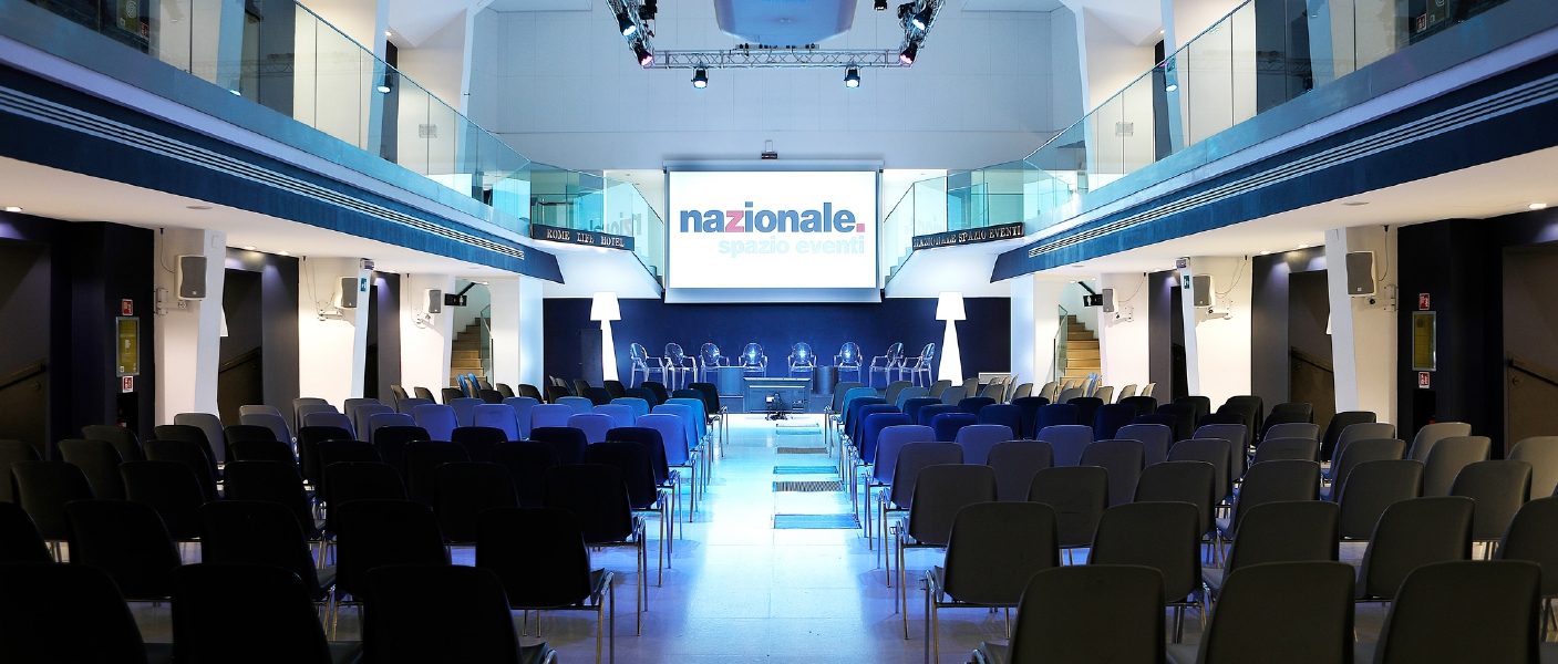 Nazionale Spazio Eventi è una location unica ed esclusiva localizzata nel centro storico di Roma. Una struttura architettonica di pregio nata negli anni ’30 come auditorium, oggi completamente ristrutturata si contraddistingue per lo stile minimale e contemporaneo, e per una dotazione tecnica e impiantistica all’avanguardia.