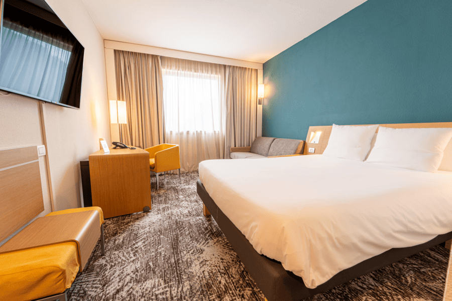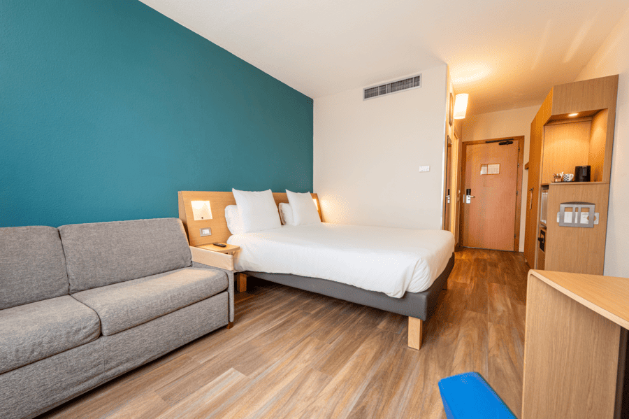 L'hotel dispone di 149 camere moderne, rinnovate nel 2024 e tutte dotate di biancheria da letto di alta qualità LIVE N DREAM, connessione Wi-Fi gratuita, set per la preparazione di tè e caffè.