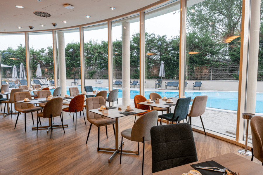 Il ristorante dell'hotel propone un'ampia selezione di piatti locali e internazionali, con una cucina semplice, moderna ed equilibrata, perfetta per pranzi e cene di lavoro o di piacere, 7 giorni su 7.