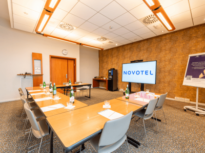 Per meeting ed eventi, il Novotel Roma Est mette a disposizione 7 sale riunioni, in grado di ospitare fino a 200 persone e con spazi fino a 170 metri quadrati. Le sale sono dotate di luce naturale, arredi ergonomici, insonorizzazione, aria condizionata, accesso Wi-Fi, microfoni, amplificatore e videoproiettore, garantendo soluzioni di successo per ogni esigenza.