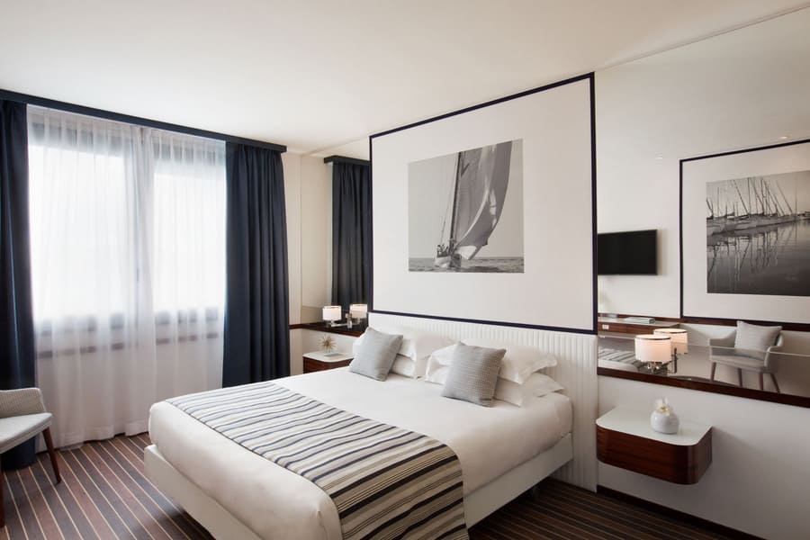 Ciascuna delle sue 188 camere e suite, dotate di ogni comfort, offre ampi spazi in una suggestiva atmosfera chic e ricercata, mentre le grandi vetrate regalano una magnifica vista sulla città. ll ristorante La Corte delizia il palato con specialità della tradizione ligure, mentre l'atmosfera lounge del bar è ideale per concedersi un buon caffè, un pranzo veloce o un cocktail.